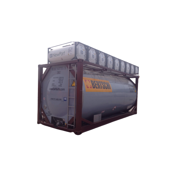 用于裝運酒類、油類、液體食品、化學藥品等液體貨物的集裝箱。目前,集團生產(chǎn)的罐式集裝箱品類有:不銹鋼罐式集裝箱、水泥箱、硫酸箱,瀝青箱等。